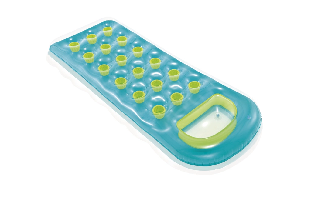 See täispuhutav madrats pakub läbipaistvat ülemist kihti koos värviliste taskutega, mis tagavad atraktiivse ja modernse välimuse.