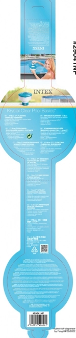 Intexi ujuv dosaator ujub vabalt vee pinnal ning selle suurem disain tagab nähtavuse ja ohutuse. See on valmistatud vastupidavast polüpropüleenist ning varustatud turvakaanega, mis mahutab kloori- või broomitablette maksimaalse läbimõõduga 7,5 cm.