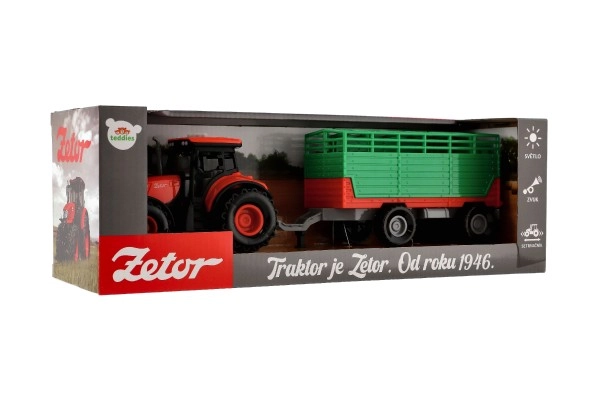 Avasta realistlik Zetor traktor järelkäruga pikkusega 36 cm, mis rõõmustab iga väikest farmerit. Mänguasi pakub jooksutuge sujuvaks sõiduks, valgus- ja heliefekte ning eemaldatavat haagist veelgi lõbusamaks mänguks. Patareid 3× AG13 on komplektis, nii et lõbu võib alata kohe.