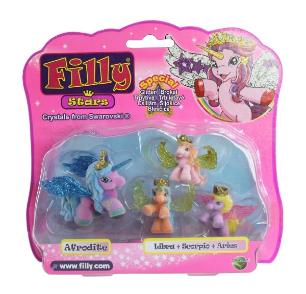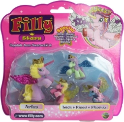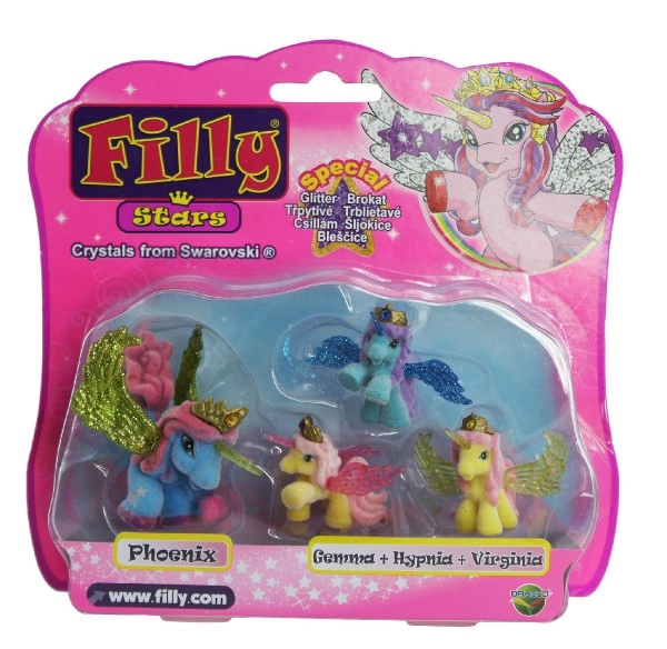 Filly Stars toob iga lapse tuppa kuhjaga fantaasiat. Komplekt 1+3 sisaldab üht suuremat hobukest ja kolme väikest varssa erksates värvides. Tänu säravatele tiibadele, kuldkroonidele ja võluksarvedele armastavad lapsed muinasjutulisi lugusid ja loovat mängu.