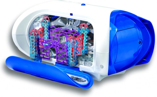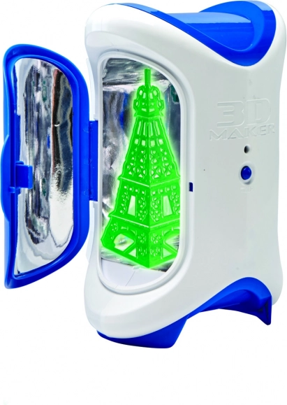 3D Maker kasutab UV-valgust ohutus kambris vaateluugiga, nii et lapsed saavad loomise protsessi turvaliselt jälgida.