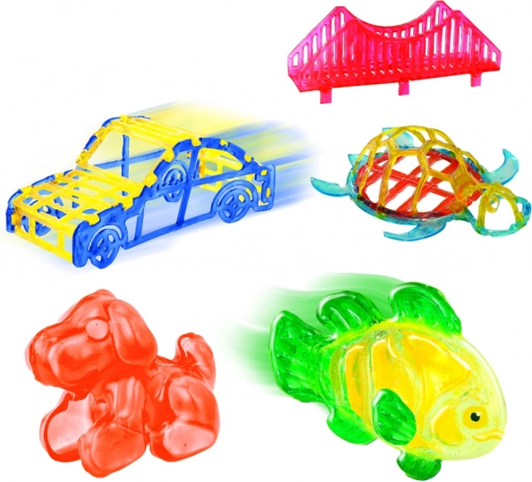 3D Magic stardikomplekt pakub lihtsat ja turvalist viisi, kuidas kodus luua oma 3D objekte – alates loomakestest ja autodest kuni pisikeste konstruktsiooniosadeni. Vaja on vaid vorm täita 3D geeliga, asetada see 3D Makerisse ja vaadata, kuidas UV-valgus muudab sinu idee tugevaks mudeliks.