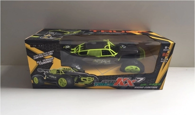 See maastiku RC-bagi on loodud kiiruseks, juhitavuseks ja lõbuks. Skaala 1:14 pakub ideaalset tasakaalu stabiilsuse ja manööverdusvõime vahel, samal ajal kui 2,4 GHz tehnoloogia tagab usaldusväärse levi ilma häireteta. Realistlik välimus, massiivsed rattad ja nähtavad vedrud rõhutavad selle võistlusiseloomu.