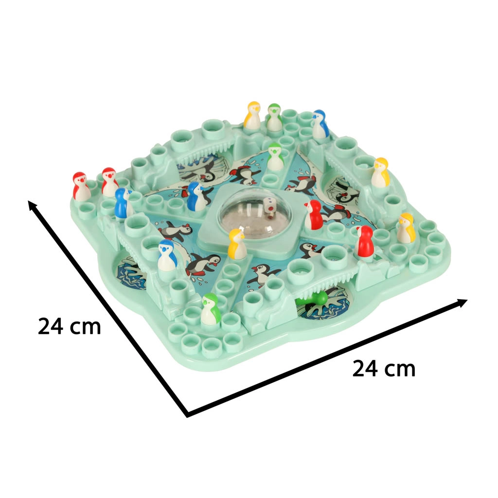 Lõbus pere lauamäng, kus värvilised pingviinid kihutavad üle jäise väljaku. Tänu keskel olevale pop-up täringule on mäng kiire, pingeline ja ettearvamatu. Lapsed harjutavad arvutamist, loogilist mõtlemist ja peenmotoorikat, vanemad naudivad koosveedetud aega ilma igavuseta. Täring on turvaliselt kupli sees, nii et see ei lähe kunagi kaduma.