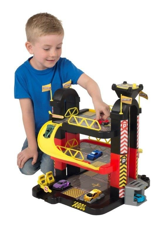 Komplekti kuulub viis väikeautot, mida saab paigutada eri tasanditele. See mänguasi on ideaalne peenmotoorika, kujutlusvõime ja koordinatsiooni arendamiseks alates kolmandast eluaastast.