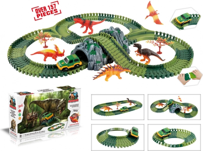 See muudetav dinosaurusraja komplekt toob laste tuppa põneva ürgmaailma. Tänu paindlikele lülidele saab rööpaid hõlpsasti ümber tõsta ja luua uusi radasid koos tunneli, kurvide ja sildadega. Komplekti kuulub valgusega autoke, mis sõidab mööda kokkupandud rada ja elavdab iga sõitu.