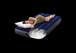 Praktiline üheinimese täispuhutav madrats mõõtudega 191 × 99 × 25 cm kaubamärgilt INTEX on ideaalne nii kodu kasutuseks kui ka reisidele. Vastupidav PVC koos sametise veluurkattega pinnal tagab meeldiva puudutuse ja parema linahaarduvuse, samas kui Dura‑Beam Fiber tehnoloogia pakub stabiilset tuge ja pikka tööiga. Komplektis on paranduspaik.
