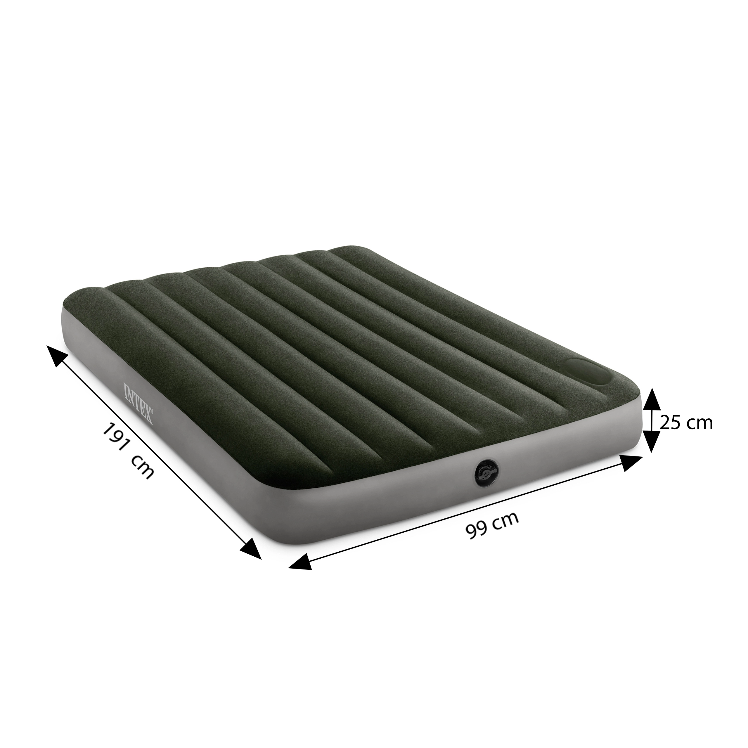 Mõõdud 191 × 99 × 25 cm pakuvad mugavat ruumi ühele täiskasvanule. Kvaliteetset PVC-d on lihtne hooldada ja veekindel flokitud pind suurendab nii mugavust kui ka vastupidavust. Komplektis on ka paranduspaik kiireteks remonttöödeks.