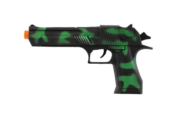 Lõbus ja ohutu mänguasi väikestele seiklejatele – 23 cm pikkune plastikpüstol hoorattaga. Päästikule vajutades kostuvad realistlikud heliefektid ilma padruniteta, mistõttu on see lastele turvaline ja ideaalne politsei ja pättide mängudeks alates 3. eluaastast.