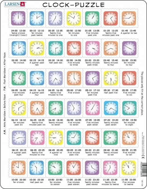 LARSENi hariv kellapusle on suurepärane abivahend esimesteks sammudeks ajatajus. Lapsed omandavad mängides, millal on aeg hommikusöögiks, lõunaks või õhtusöögiks, ning õpivad samal ajal lugema aega noolekellalt. Kvaliteetne kartong ja vastupidavad tükid tagavad pika kasutusea ka korduva kasutamise korral.