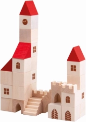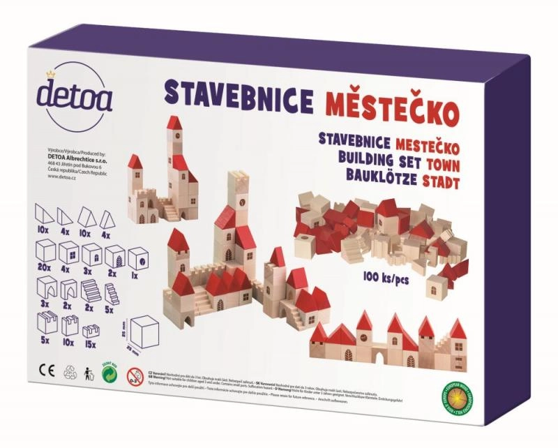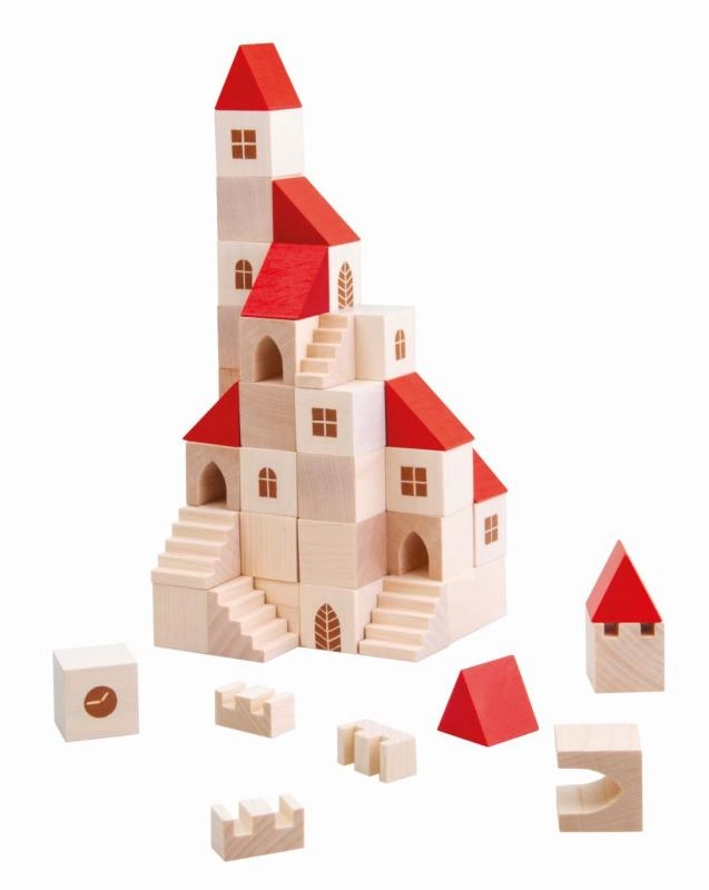 See puidust ehituskomplekt sisaldab 100 erineva kuju ja suurusega tükki, mis võimaldavad lastel luua oma väikese linnakese. Tänu värvilisele lahendusele punaste katuste ja naturaalse puiduga on komplekt mitte ainult kaunis, vaid ka täielikult funktsionaalne kujutlusvõime arendamiseks. See aitab arendada peenmotoorikat ja ruumitaju.