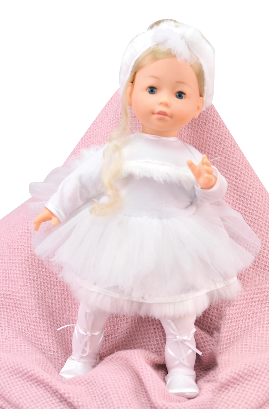 - Realistlik teostus: vinüülist pea, käed ja jalad, pilgutavad silmad ning pikad juuksed.