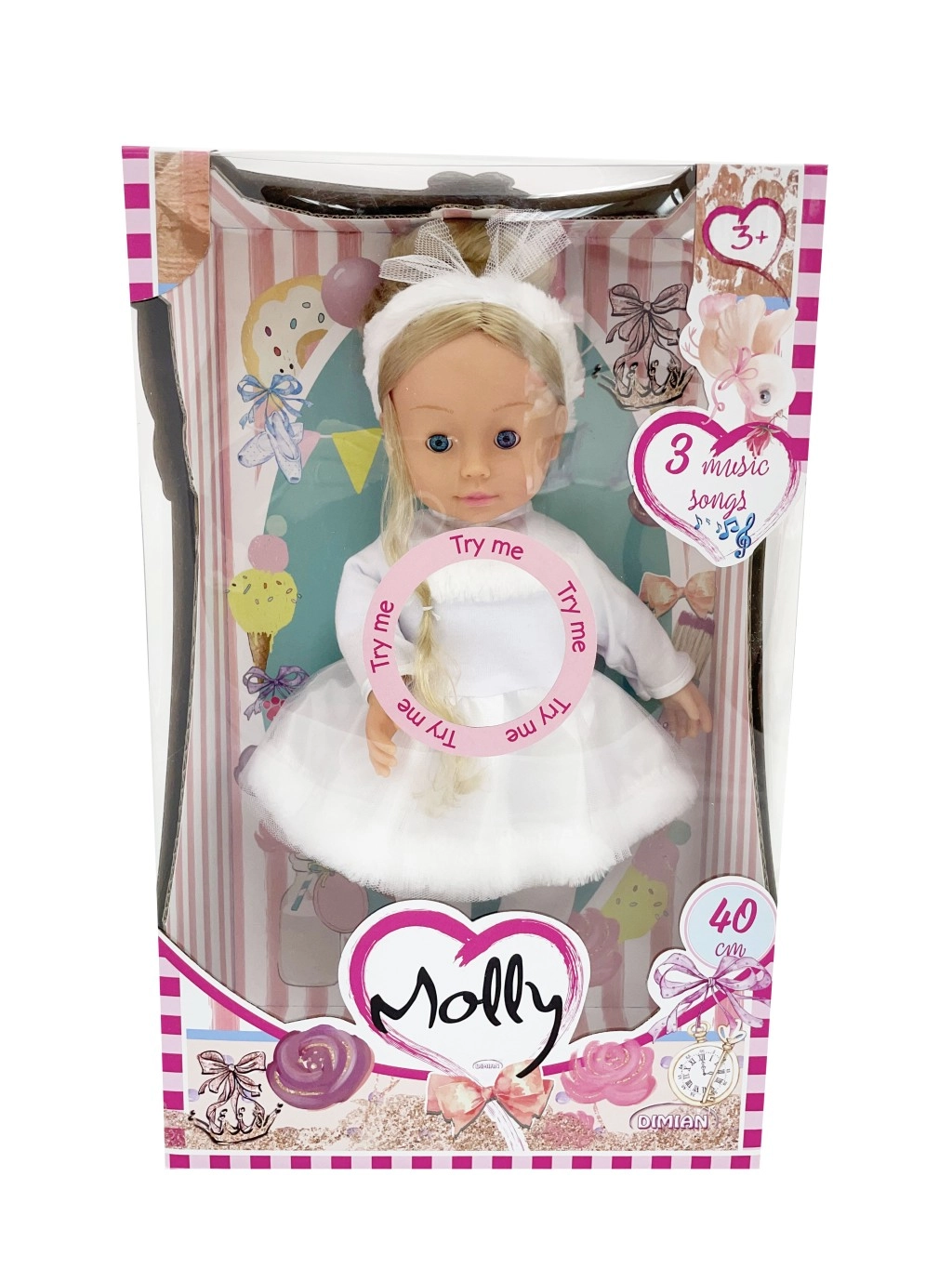 Armas nukk Bambolina Molly baleriin rõõmustab iga väikest tantsusõpra. Tal on pilgutavad silmad, pikad juuksed ja seljas kaunid baleriinikleidid. Ta oskab esitada 3 laulu ning tänu 40 cm suurusele sobib hästi ka väiksematele lastele käes hoidmiseks. Sobib alates 3. eluaastast, patareid LR44 on komplektis.