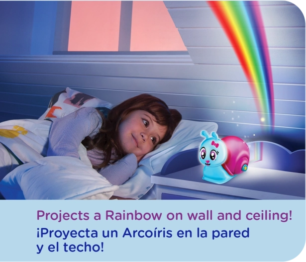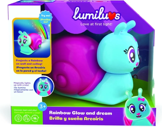 Helge ja sõbralik Lumiluvsi tigu on ideaalne kaaslane laste magamaminekul. Piisab, kui vajutada nuppu tema kestal, ning seinal ja laes süttib vikerkaar, muutes tavalise toa võluväeliseks paigaks.