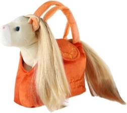 See oranž plüüsist käekott peidab endas armsat hobukest, mida saab igal ajal välja võtta ja tagasi panna. Pikk, pehme lakk lausa kutsub kammima ja patse punuma, arendades peenmotoorikat ja loovust.