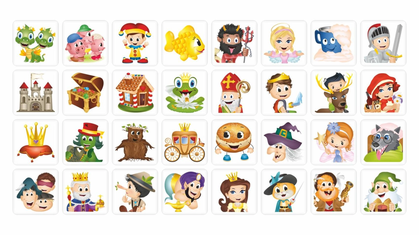 Värvilised printsesside, rüütlite, lohede ja teiste muinasjututegelaste motiivid köidavad lapsi ja teevad paaride leidmise lihtsamaks.