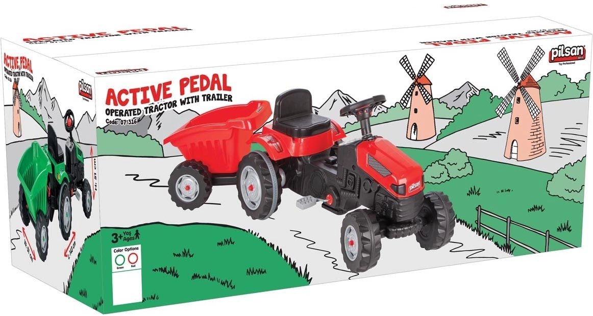 Avastage õuel lõbu selle kaubamärgi Pilsan pedaaltraktori ja käruga. Tugev ehitus, kandevõime kuni 50 kg ja realistlik roolijuhtimine tagavad 3+ aastastele lastele pikad aktiivse mängu tunnid. Tänu kärule saavad nad vedada mänguasju või liiva ning arendada peenmotoorikat, kujutlusvõimet ja liikumisoskusi.