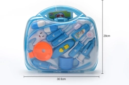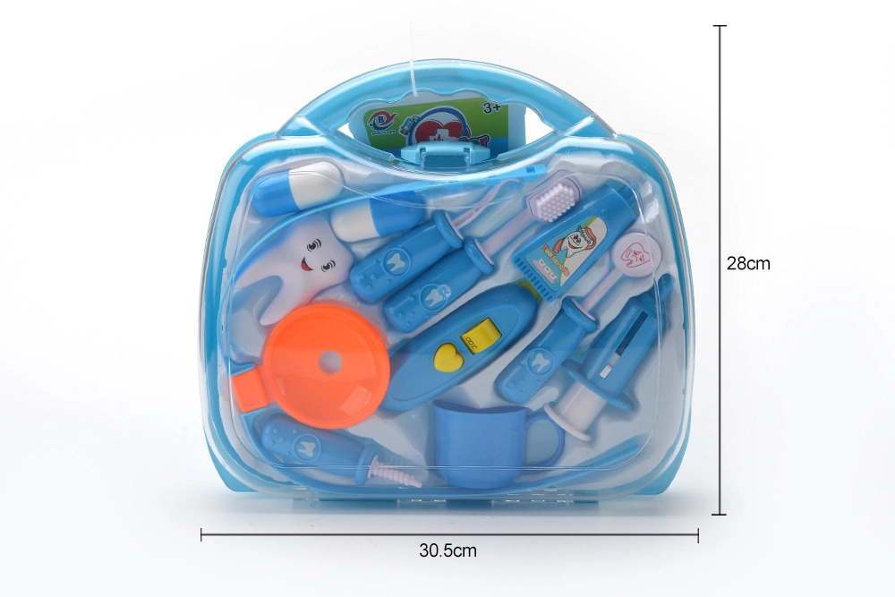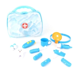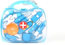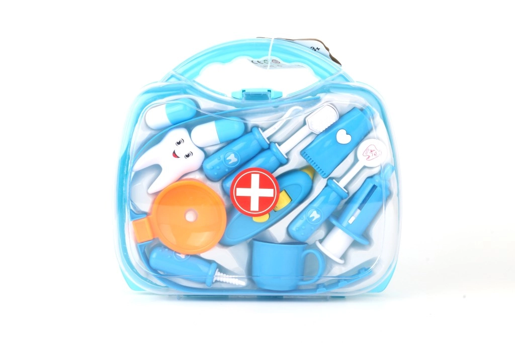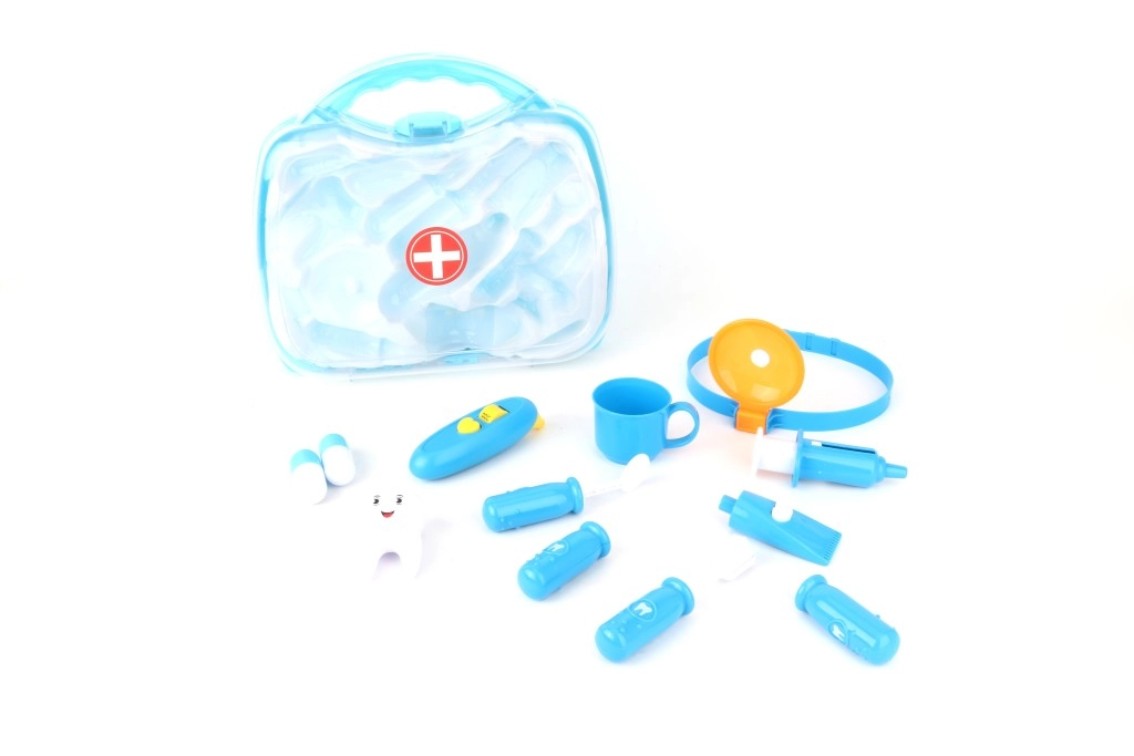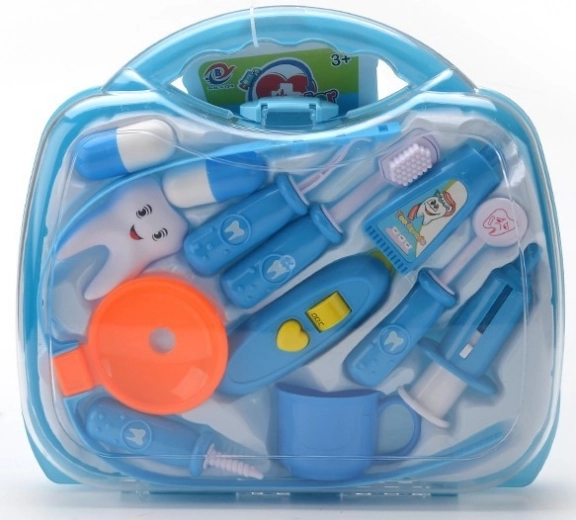 Läbipaistev sinine kohver peidab erinevaid hambaravitarvikuid, sh hambahari, “pasta” ja hambamudel. Suurepärane nii hügieeniharjumuste harjutamiseks kui ka loovaks hambaarstimänguks.