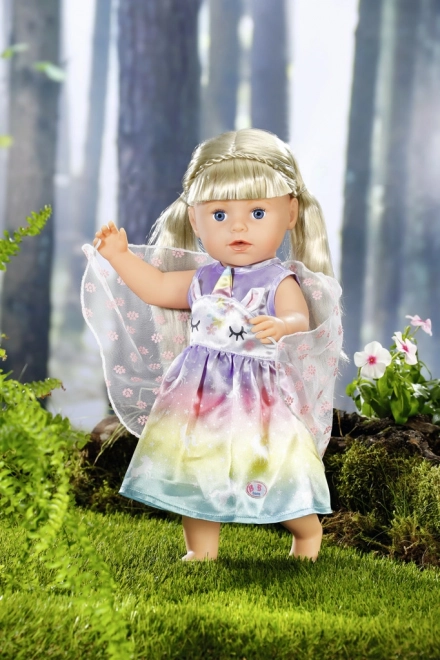 Muuda iga mäng muinasjutuliseks seikluseks. Need kleidid BABY born nukule suuruses 43 cm (sobivad ka 39–46 cm) säravad vikerkaareülemineku, ükssarvikumotiivide ja õrnade tiibadega. Tänu kvaliteetsetele materjalidele peab vastu rohketele ümberriietamistele, teepidudele ja kuninglikele paraadidele.