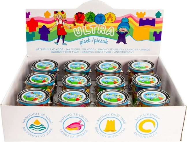 Kineetiline ULTRA liiv litsentsiga KÁJA ja BAMBULÁČEK pakendis 120 g ja ühe väikese vormiga pakub 6 erksat värvi. Vormub suurepäraselt, ei määri, on lihtne koristada ning vormid hoiavad ideaalselt kuju. Sellega saab isegi ehitada vee all ning tänu pehmele konsistentsile sobib see ka antistress-vahendiks. Sobib lastele alates 3. eluaastast.