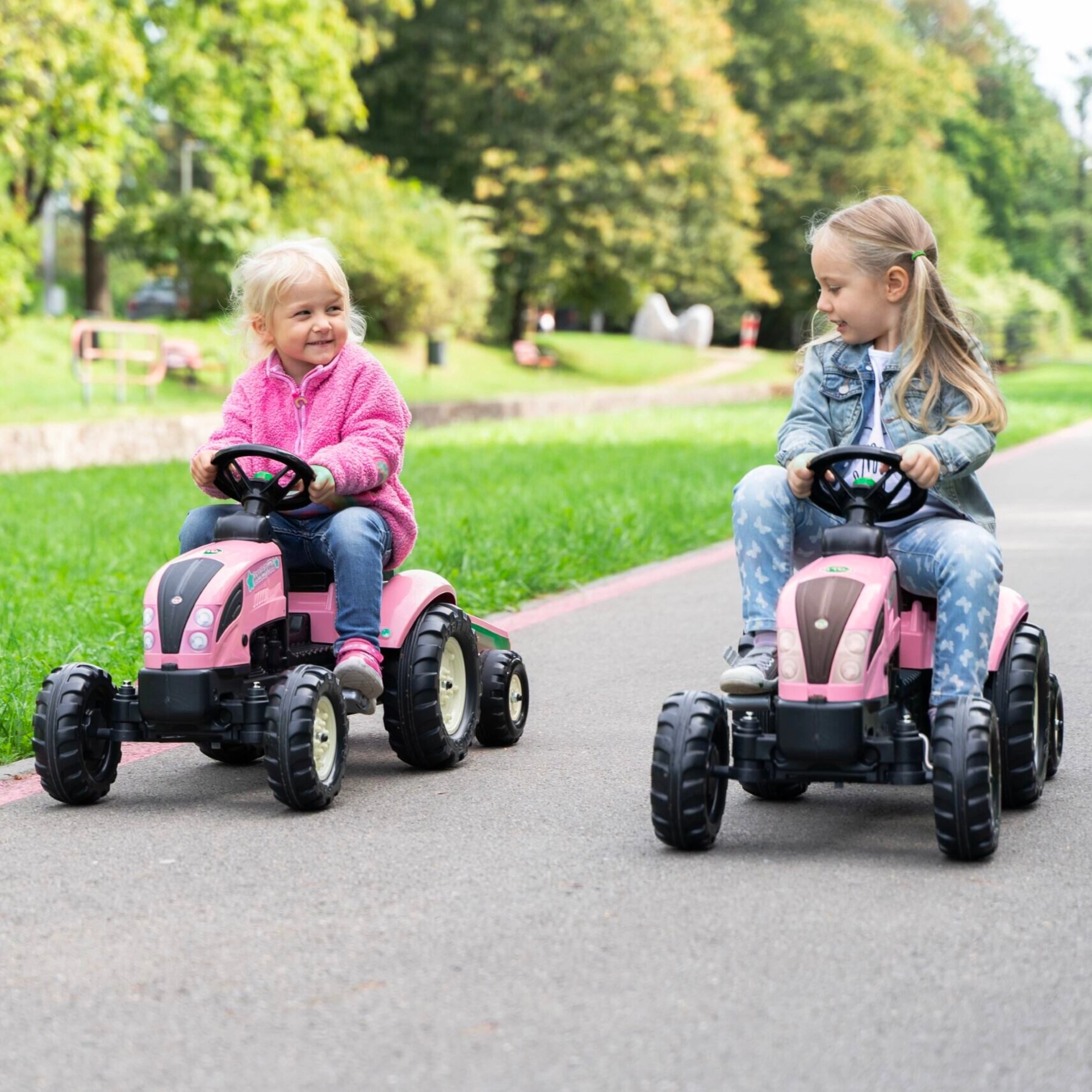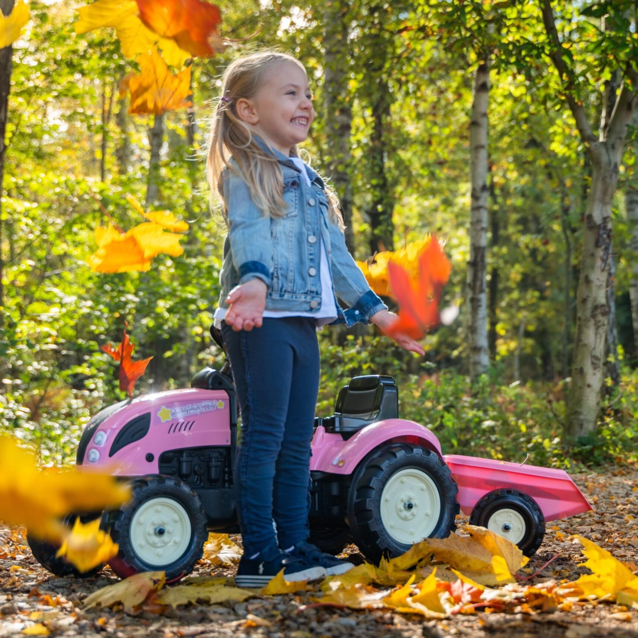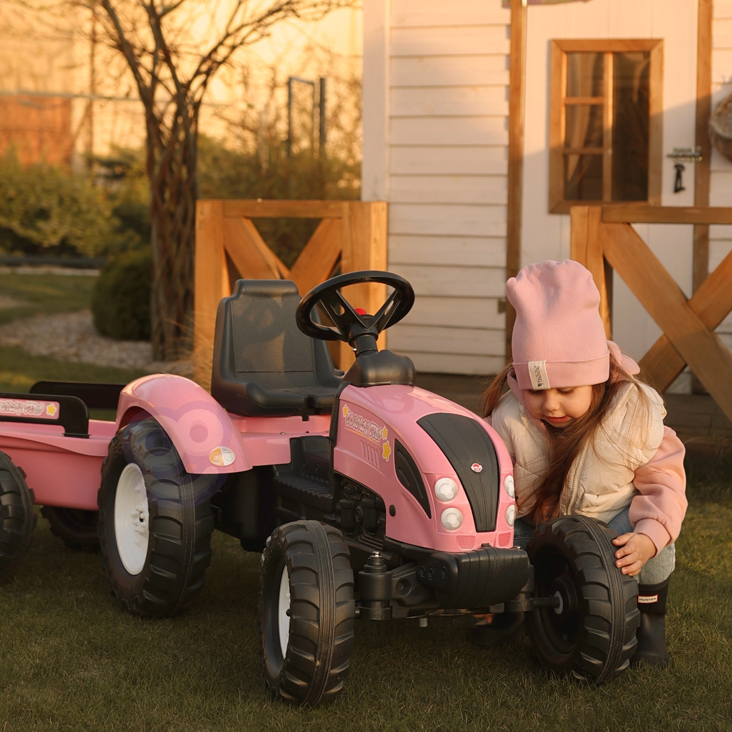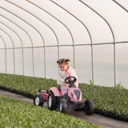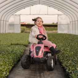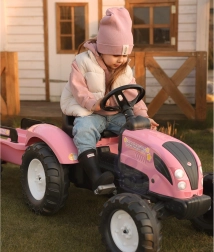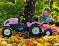 Laste traktor FALK Country Star rõõmustab kõiki väikseid juhte, kes armastavad liikumist ja mängu värskes õhus. Vastupidavast plastist konstruktsioon tagab pika tööea ja ohutu kasutuse, samal ajal kui tagasillale ketiülekandega jõuülekanne pakub sujuvat sõitu. Tänu eemaldatavale haagisele saavad lapsed vedada mänguasju või pisiasju ning nautida realistlikku sõidukogemust.