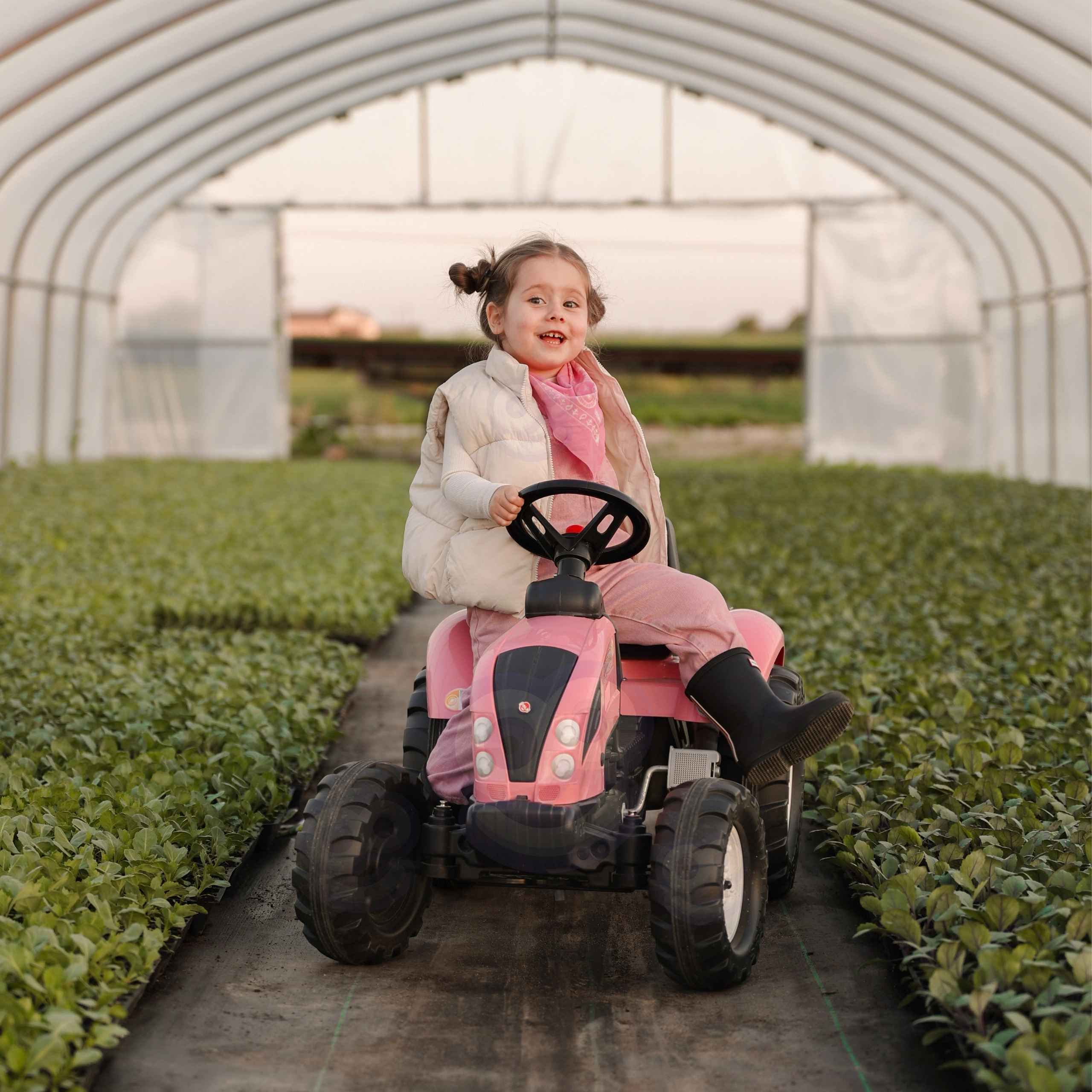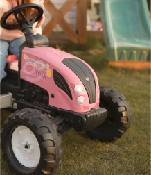 Traktor on mõeldud lastele alates 2. eluaastast, sellel on stabiilne konstruktsioon, pöörlev esisild lihtsaks juhtimiseks ja signaalnupp roolil interaktiivseks mänguks. Tootmine toimub Prantsusmaal, kus pööratakse suurt tähelepanu materjalide kvaliteedile ja ohutusele.