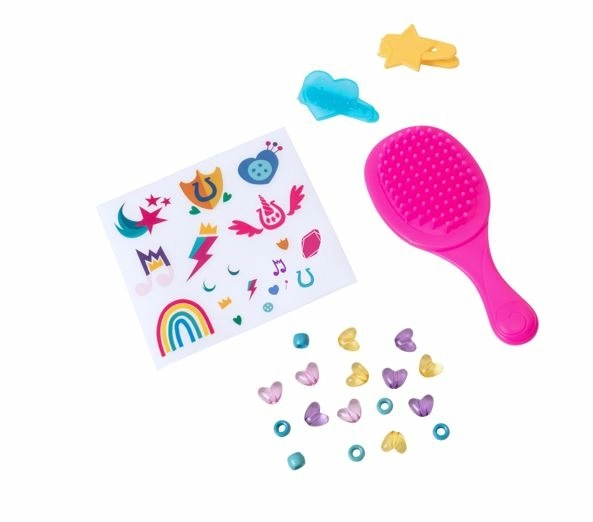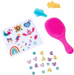 Komplekt sisaldab rikkalikku valikut tarvikuid, nagu kamm, klambrid ja helmed, et pakkuda lõputuid võimalusi soenguteks ja kaunistamiseks.