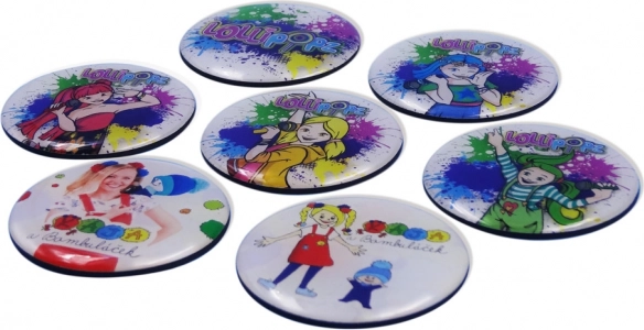 Stiilne ümmargune magnet motiiviga LOLLIPOPZ läbimõõduga 45 mm kaunistab iga külmkappi või magnettahvlit. Tänu tugevale magnetile hoiab kindlalt paigal nii teated kui fotod ning on saadaval 5 disaini segus, mis on täis värve. Suurepärane valik fännidele ja lastele alates 3. eluaastast.