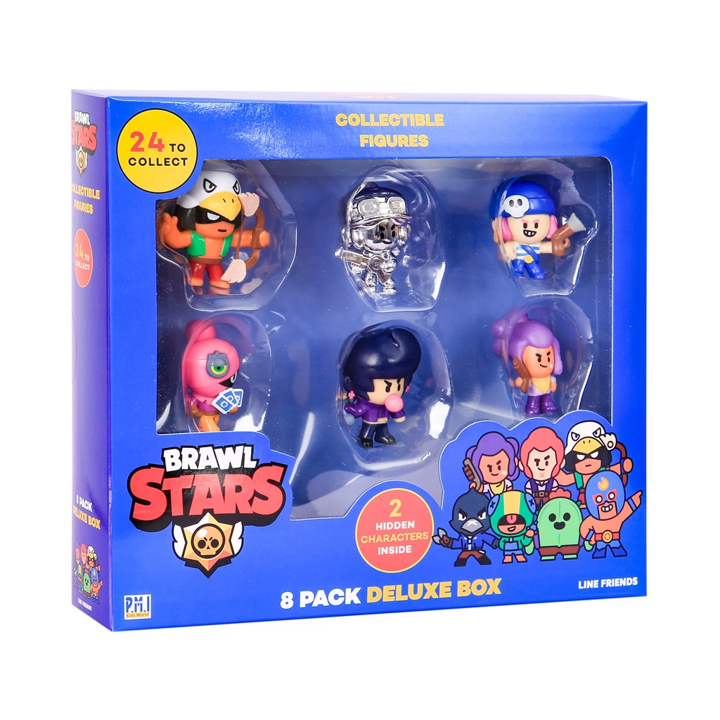 See deluxe-pakend sisaldab 8 võluvat figuuri Brawl Starsi maailmast. Kollektsioonis on kuus nähtavat ja kaks peidetud figuuri, mis lisavad üllatus- ja põnevusmomenti.