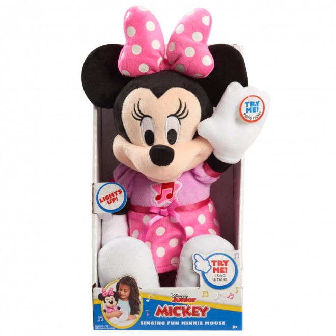 Pehme Minnie on valmistatud õrnadest materjalidest, mis sobivad suurepäraselt kallistamiseks ja on turvalised mängimiseks ka kõige pisematele fännidele.
