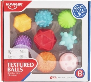 See tekstuursete pallide komplekt sobib ideaalselt lastele alates kuue kuu vanusest. Pallid on valmistatud silikoonist, mis on meeldiv puudutada ja lihtne haarata. Erinevad pinnatekstuurid stimuleerivad meelte arengut.