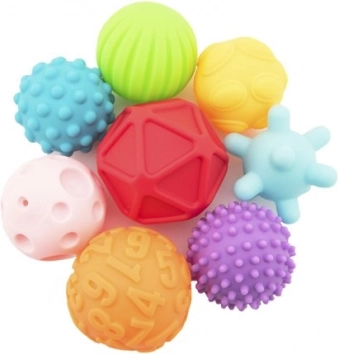 Avastage kaheksa tekstuurse palli komplekt, mis on loodud lapse meeleliste kogemuste ja koordinatsiooni arendamiseks. Erinevad värvid ja tekstuurid muudavad mängu interaktiivseks ja lõbusaks.