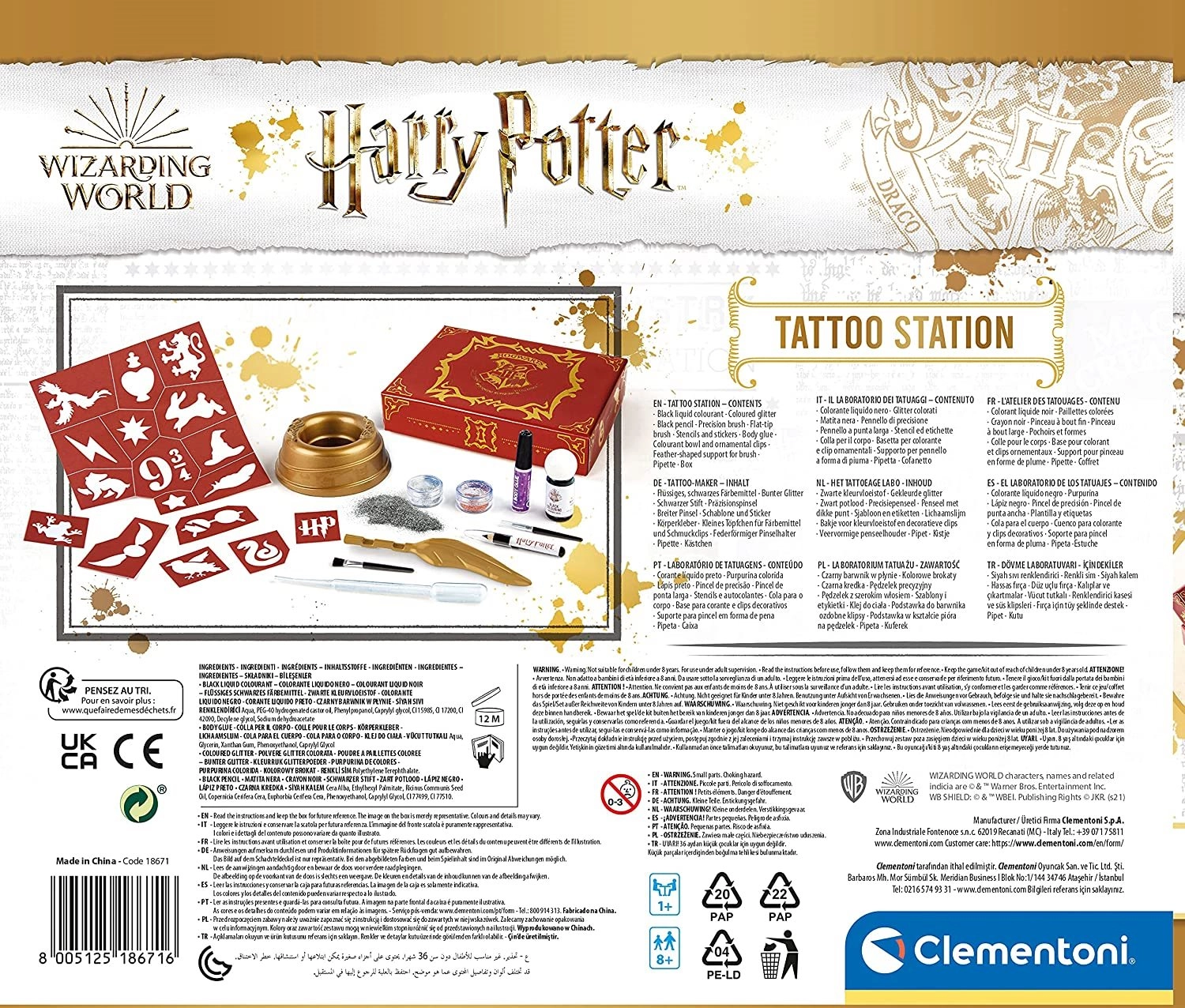 Avasta loominguline võlumaailm HARRY POTTERi tätoveeringustuudioga, mis võimaldab lastel turvaliselt luua ainulaadseid ajutisi tätoveeringuid. Tänu rikkalikule tarvikute valikule, šabloonidele ja sädelevatele pulbritele sünnivad võlulugudest inspireeritud mustrid. Lihtne pealekandmine ja korralik hoiustamine karbis teevad sellest komplektist suurepärase kingituse väikestele võluritele ja nõidadele.