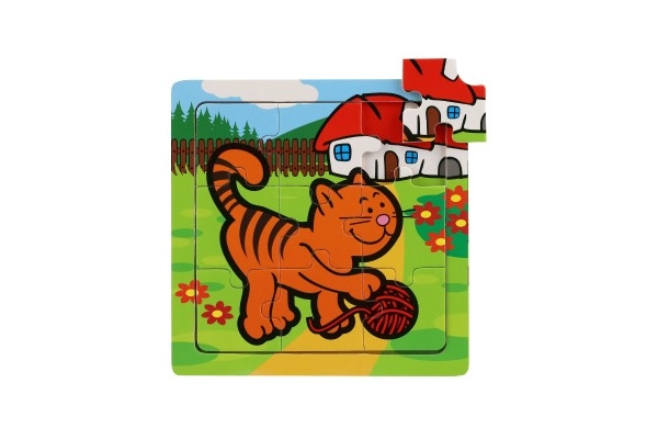 Pusle on valmistatud kvaliteetsest puidust, mis on vastupidav ja meeldiv puudutusele. Üheksa tükki on paigutatud puidust alusele freesitud servaga, mis lihtsustab kokkupanekut ja aitab tükkidel paigal püsida.