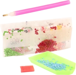 Teemantmaali tegemine on lõbus ja rahustav tehnika, kus applikaatori abil kantakse väikesed „teemandid” vastavalt eeltrükitud koodile iseliimuvale lõuendile. Kivikesed on sorteeritud kottidesse tähtede ja sümbolite järgi, nii et teate täpselt, kuhu iga detail kuulub. Tulemuseks on särav 10 × 15 cm pilt, mis kaunistab teie tuba või sobib toredaks kingituseks.