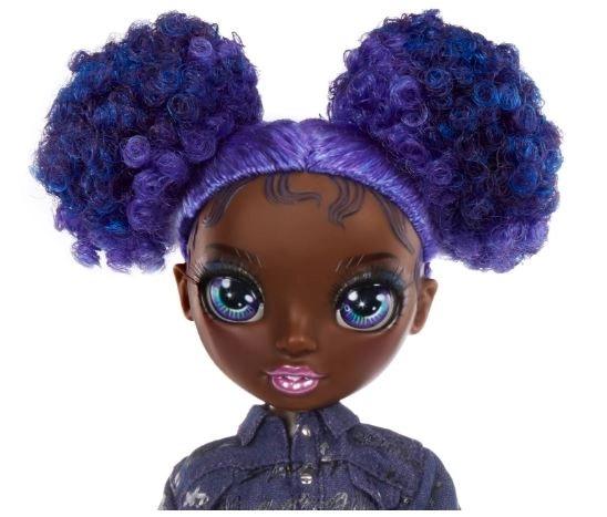 Lainelised lillakas-sinised juuksed kahes patsis, särav meik ja kooskõlastatud outfit teevad Krystalist Junior High kollektsiooni tähe.