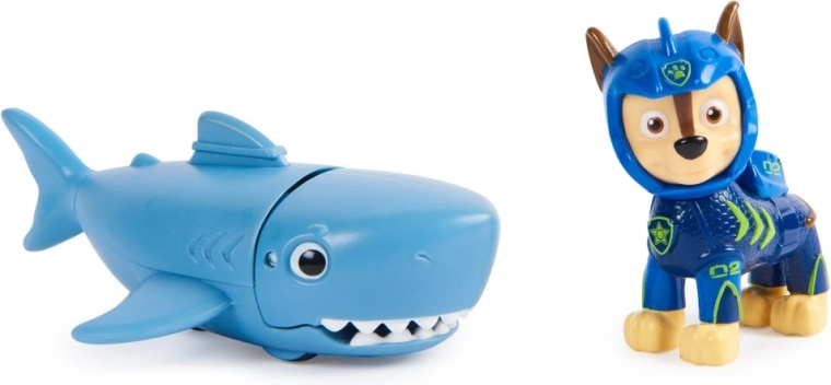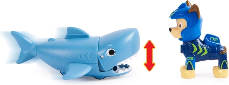 Chase’i figuur kannab uut neopreenkostüümi, et olla valmis igaks veealuseks päästeaktsiooniks. Lapsed saavad kinnitada Chase’i tema haist sõbra seljale ja aktiveerida hammustusmehhanismi lihtsa edasiliigutusega. Autentsed detailid ja telesarjast „Paw Patrol” inspireeritud disain pakuvad lastele tundideks lõbu ning võimaluse avastada loovaid päästemissioone.