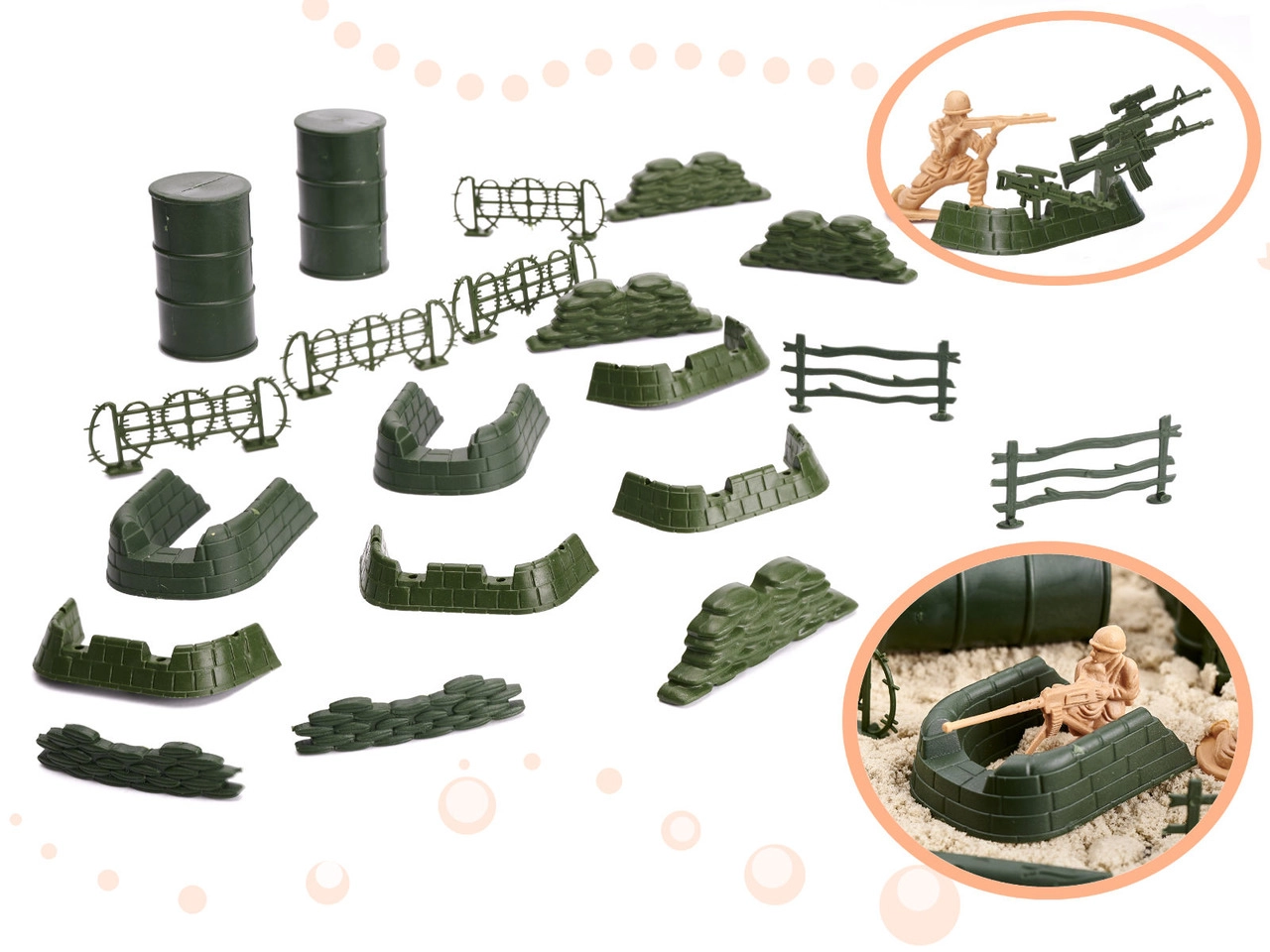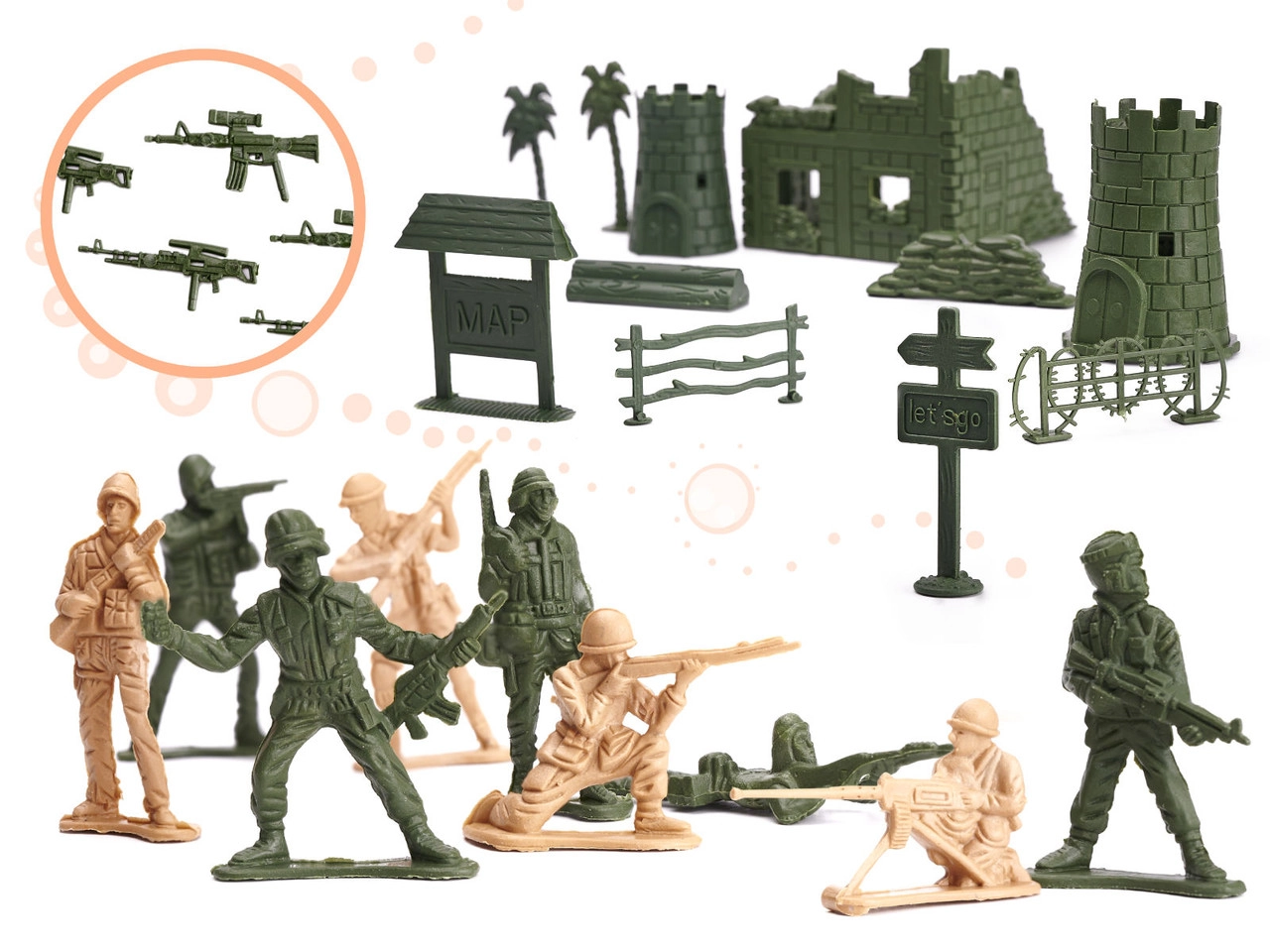 Komplekt umbes 60 sõduri ja paljude tarvikutega võimaldab luua realistliku lahinguvälja ja mängida ilma piiranguteta.