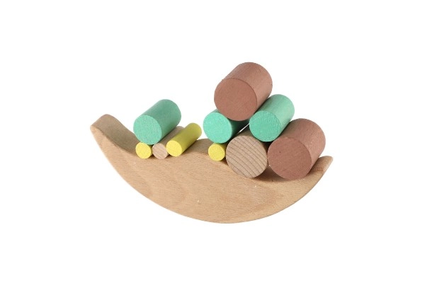 Mäng sisaldab erinevaid klotse, mida lapsed paigutavad tasakaalupõhjale, harjutades sellega peenmotoorikat.