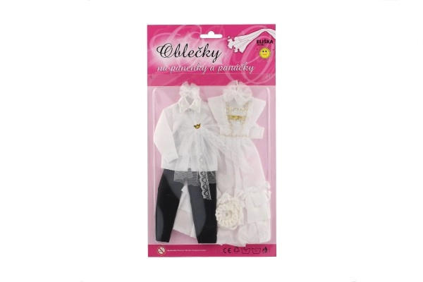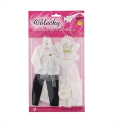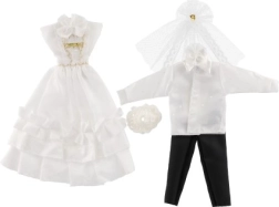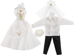 Selle ainulaadse pulmarõivaste komplektiga võivad sinu nukud saada iga kujuteldava pulma tõelisteks tähtedeks! Rõivaste hulka kuuluvad detailirohke kleit ja elegantne ülikond, mis lisavad sinu pulmaloolle võlu ja sära.
