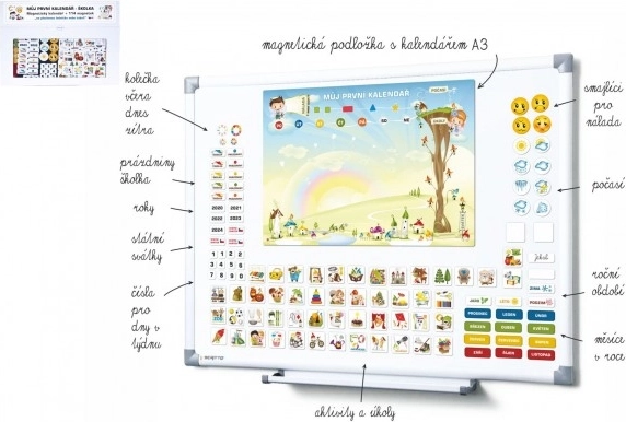 See originaalne magnetkalender on ideaalne lastele, kes armastavad magnetitega mängida. See aitab lastel interaktiivselt õppida planeerima igapäevaseid tegevusi, eristama aastaaegu, kuid, nädalapäevi ja palju muud.