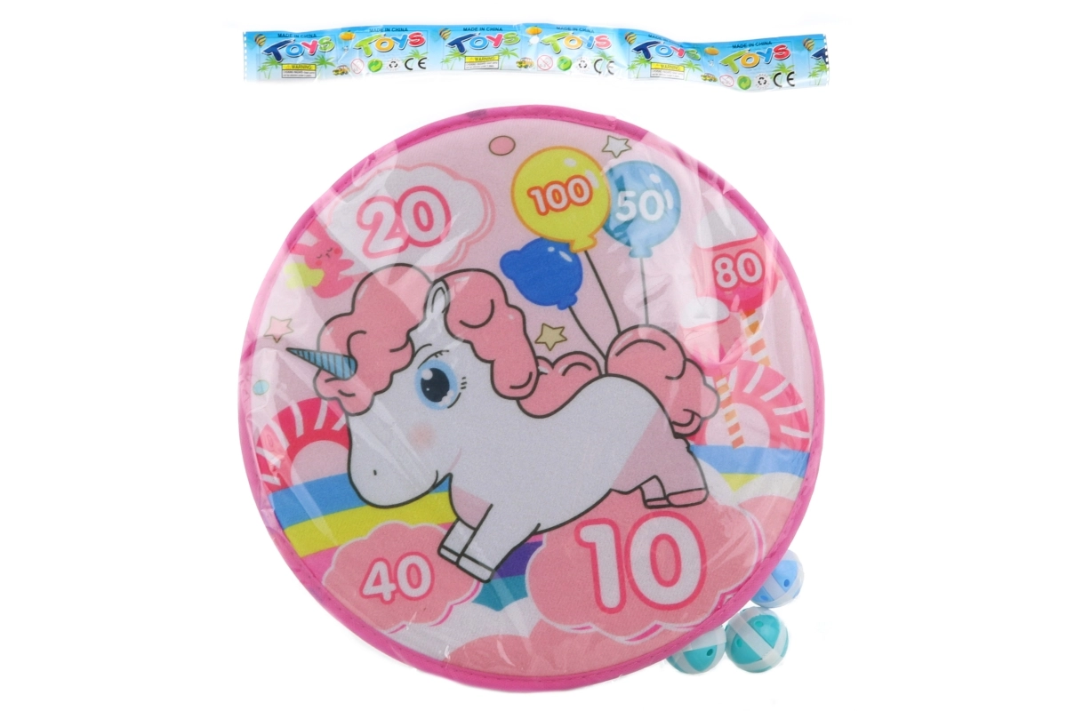 Lõbus laste takjanooltahvel ükssarviku motiiviga, läbimõõt u 35 cm, kuue takjapalliga turvaliseks viskamiseks. Ideaalne laste motoorika, täpsuse ja silma-käe koordineerimise arendamiseks alates 3. eluaastast.
