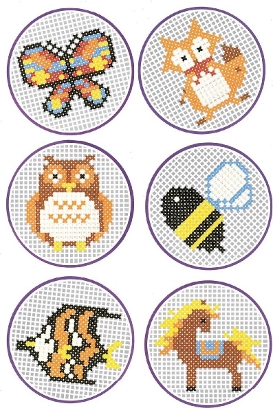 - 1× plasttahvel, 1× paberist mustrijoonis, 1× nõel, erivärvilised mulineed