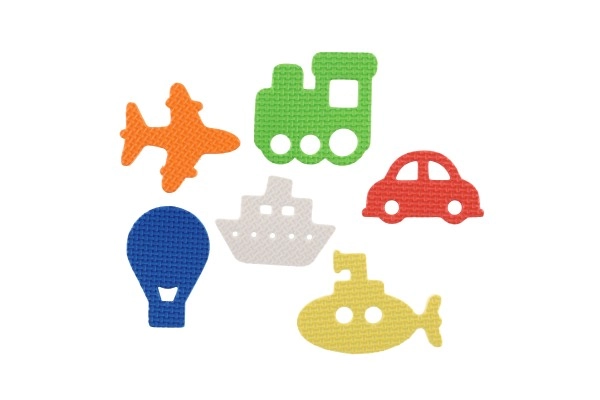 Komplektis on lennuk, rong, laev, auto, kuumõhupall ja allveelaev – ideaalne kooslus temaatilisteks mängudeks ja lugudeks vannis.