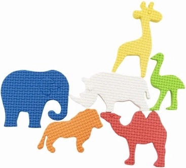 - 6 vahust veekleebist (elevant, lõvi, kaamel, jaanalind, ninasarvik, kaelkirjak)