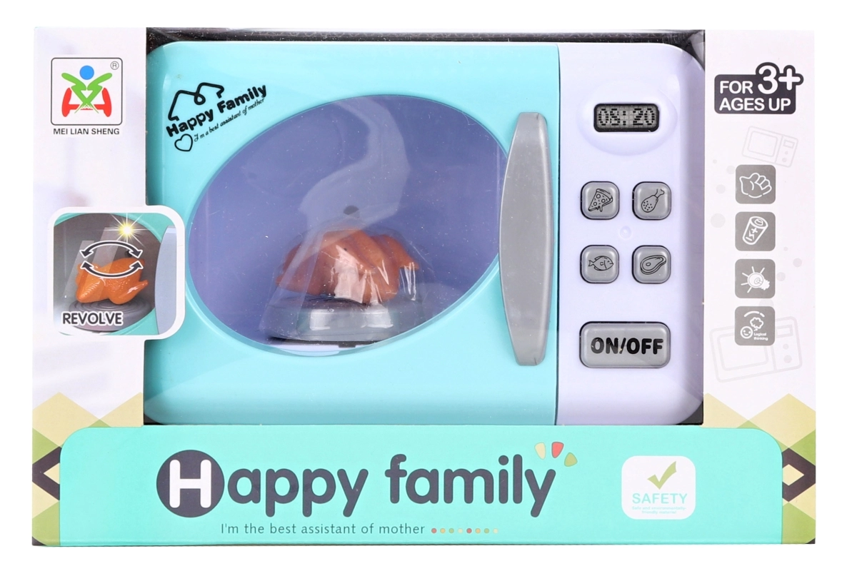 Laste mikrolaineahi HAPPY FAMILY toob realistliku lõbu igasse lastesõbralikku kööki. Tänu valgusefektidele ja pöörlevale taldrikule saavad lapsed kogeda, kuidas päris mikrolaineahi toimib, ning arendada peenmotoorikat, kujutlusvõimet ja rollimänge.