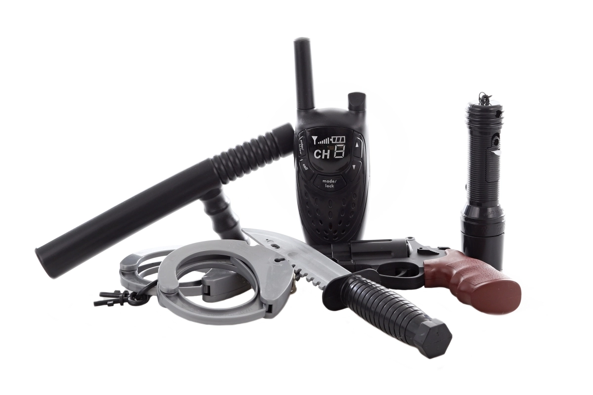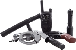 Praktiline patareidega taskulamp tagab rohkem lõbu ka kehvemas valguses ning raadiosaatja toetab suhtlust mängu ajal. Püstol, käerauad ja kummikupats loovad autentse politseiniku kogemuse. Patareid on komplektis, seega ei ole vaja midagi juurde osta.