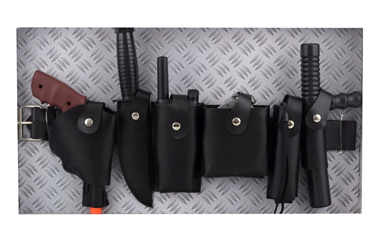 Laste politseikomplekt vastupidava nahkvöö ja rikkaliku varustusega rõõmustab kõiki väikseid korravalvureid. Komplektis on kõik, mida on vaja põnevaks mänguks: püstol, nuga, raadiosaatja, käerauad, taskulamp patareidega ja kummikupats. Kaasas on ka 3 AG13 patareid, nii et lõbu võib alata kohe. Sobib lastele alates 6. eluaastast.
