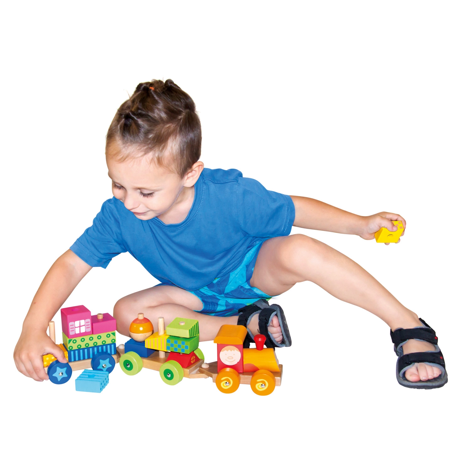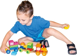 Multifunktsionaalne puidust rong on mitte ainult järelveetav mänguasi, vaid ka ehituskomplekt, mis aitab lastel arendada loovust. Komplekti kuuluvad kolm alusraami ja 18 erinevat klotsi, mida saab vastavalt fantaasiale kokku laduda.