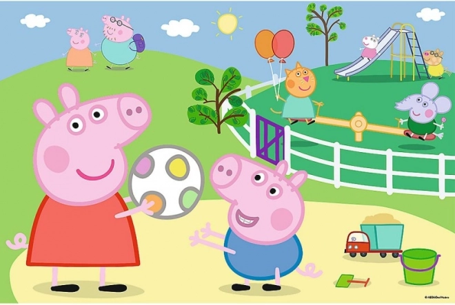 Värvikas stseen Peppa ja tema sõpradega pakub rõõmsat kokkupanekut ning toetab fantaasiat ja jutuvestmist pildi tegevusest.